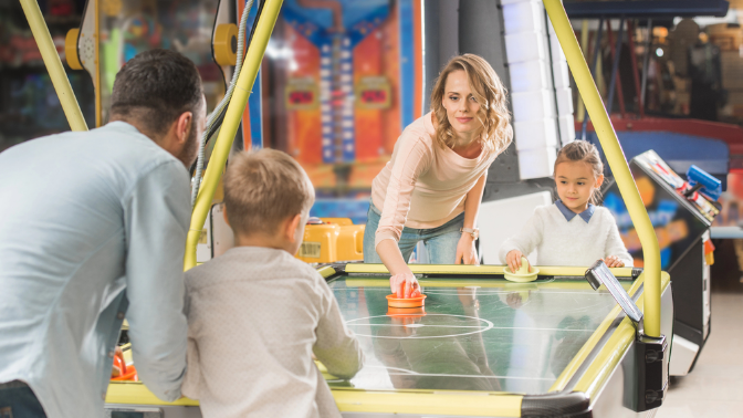 Аэрохоккей — игра для двух игроков, цель которой заключается в том, чтобы забить шайбу в ворота противника. Необходимое оборудование для игры — специальный стол, в котором установлен компрессор для создания вертикальных потоков воздуха. Эти потоки удерживают шайбу в парящем состоянии, что позволяет ей двигаться с большой скоростью после удара биты. Динамичная и захватывающая игра подходит для игроков любого возраста. Аэрохоккей требует сосредоточенности и быстрой реакции. В качестве тактики можно выбрать оборону или нападение, а для гарантированной победы вам придется их умело совмещать. Игра подарит вам массу удовольствия и положительных эмоций!
