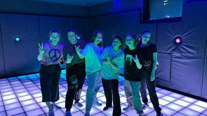 — Скидка 50% на 50 минут игр для компании до 6 человек в большой игровой комнате в выходные дни (пт-вс: до 12:00) (3000 руб. вместо 6000 руб.)