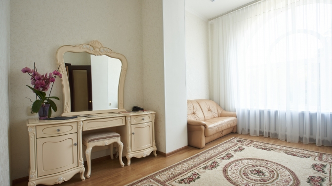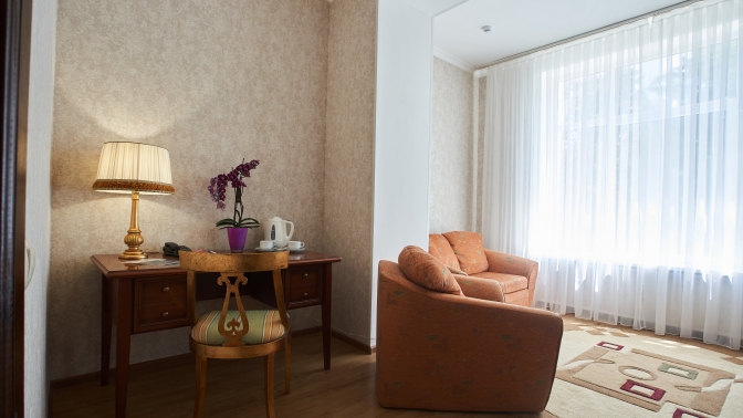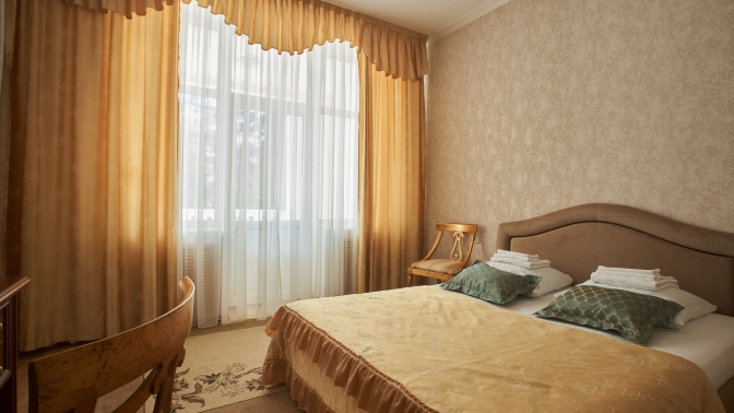 Все номера категории люкс (площадь номера — 45 кв. м) санатория оборудованы: