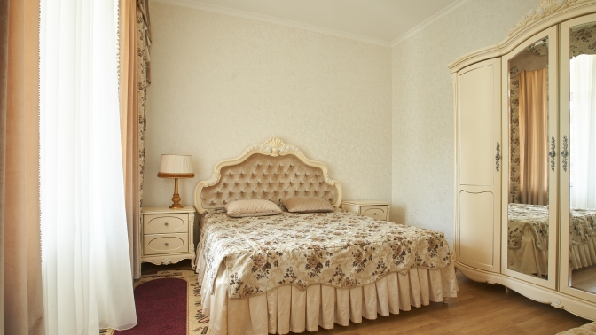 — спальной комнатой (1 двухместная кровать или 2 раздельные, письменный стол, шкаф для одежды);