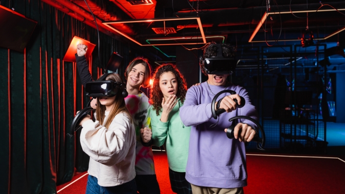 В комнату виртуальной реальности можно прийти с друзьями и играть друг против друга, а можно сыграть вместе против виртуальных монстров. Ну и самое приятное — база игр огромна, в ней найдется что-нибудь интересное для всех игроков от мала до велика. Это может быть современный город, средневековое поселение или же далекое-далекое будущее — выбирайте, что вам больше нравится, и вперед, навстречу ужасным мутантам и кровожадным монстрам!