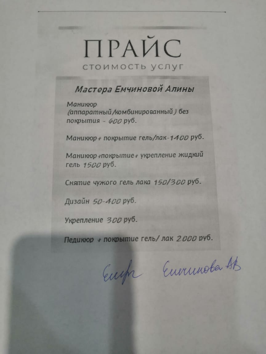 — при оказании услуг используются гель-лаки следующих марок: Farb, Strazelli, Mio Nails, BR;