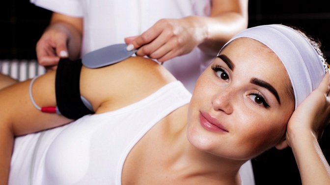 - Миостимуляция — способ подтянуть мышечный корсет, устранить обвислость ягодиц и груди, убрать пару лишних сантиметров на талии или бедрах. Такую процедуру в шутку называют гимнастикой для ленивых, так как она не требует титанических усилий для достижения результата.