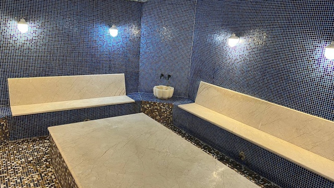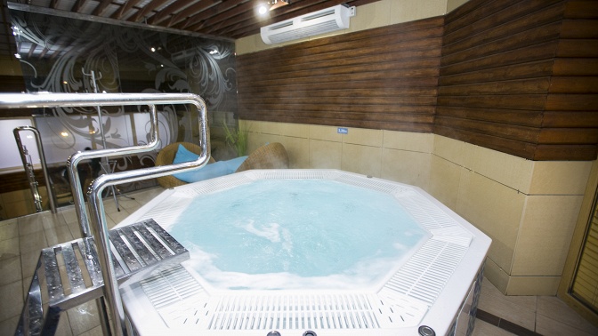 — 3-уровневая аквазона с гидромассажным бассейном, джакузи и ледяным фонтаном расположена на открытом воздухе;