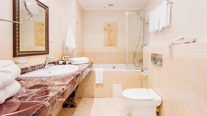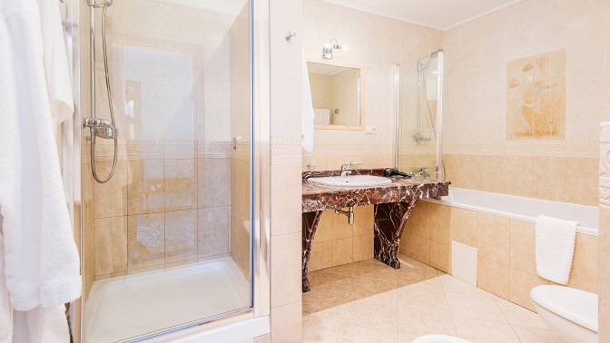 — собственные ванные комнаты с теплым полом и современной сантехникой;