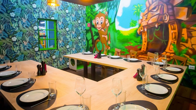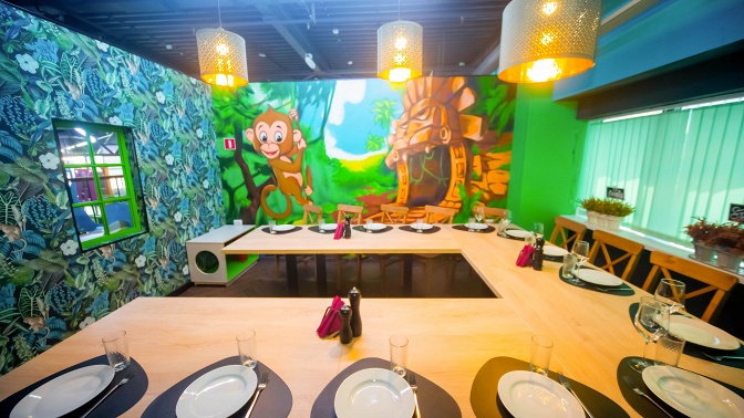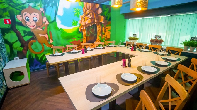 Пока дети покоряют новые вершины под присмотром инструкторов, взрослые могут отдохнуть в уютном семейном ресторане. В меню ресторана включены блюда интернациональной кухни, популярные в разных уголках мира. Для маленьких посетителей разработано игровое детское меню. Среди хитов — мини-пицца на цветном тесте, сырники с ягодным муссом и молочные коктейли. Все блюда готовятся из свежих и натуральных продуктов без добавления консервантов и добавок.