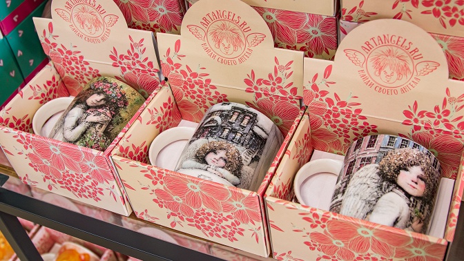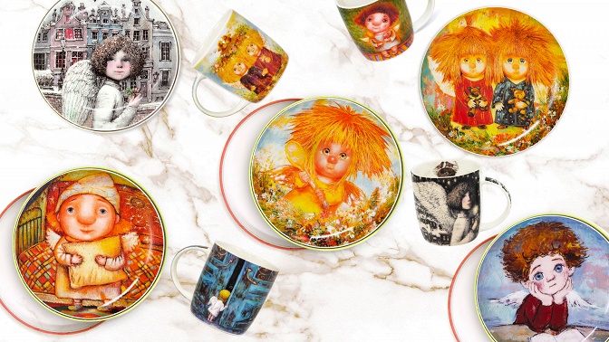В ассортименте представлены изделия из коллекционного фарфора, украшенные работами российских художников. На кружках и тарелках оживают добрые образы — трогательные ангелы, уютные совушки, харизматичные петербургские коты. Каждый сюжет наполнен теплом, вниманием к деталям и авторским стилем, благодаря чему даже привычное чаепитие превращается в особый ритуал.
