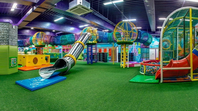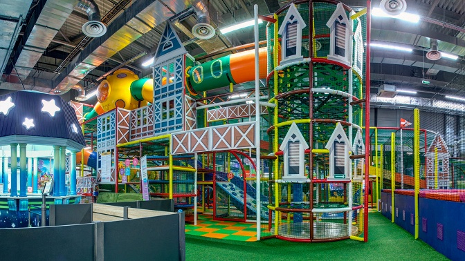 В распоряжении мальчиков и девочек находятся большой многоуровневый лабиринт, аттракцион «Авоська», поролоновая яма с мягкими разноцветными кубиками, сухой бассейн с яркими шарами и батутный комплекс. Можно покататься со скоростной горки на «ватрушке», заняться скалолазанием на скалодроме, проявить свою ловкость и выносливость в канатном парке.