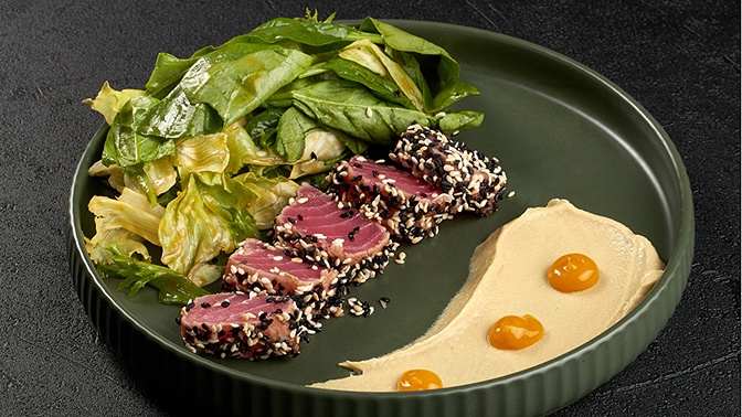 В меню представлены блюда европейской, паназиатской и японской кухни. А еще здесь превосходные свежие десерты. Большой выбор угощений, подача и вкус — в ресторане всё на высоте.