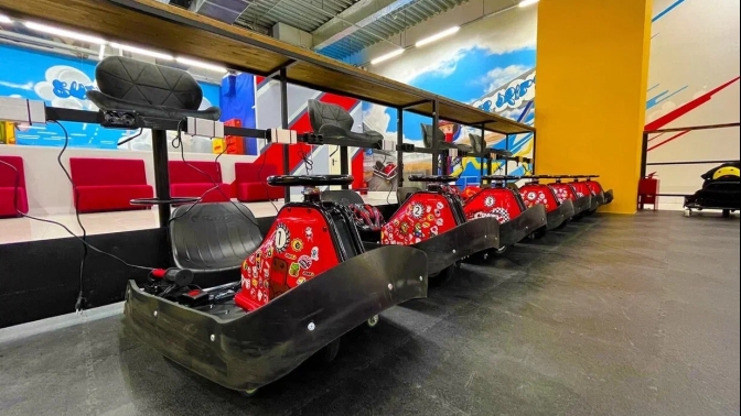 Картинг доступен как детям (4+), так и взрослым (до 70 кг). Благодаря большой трассе, современным машинкам с ручником для дрифта и квалифицированному персоналу, гости картинга получают полное погружение в этот вид досуга.