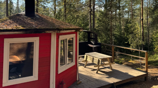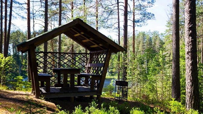 — стационарный финский гриль (60 см) с барбекю-решетками (топится углем);