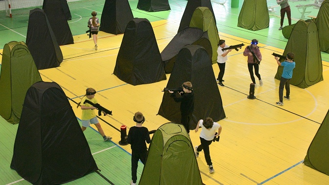 - Лазертаг — командная военно-тактическая игра, в которой участвуют компании до 20 человек. Все участники делятся на 2 или более команд. Цель — поразить противника из специального автомата (бластера), вот только вместо пуль — инфракрасный луч.