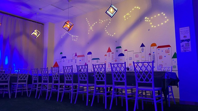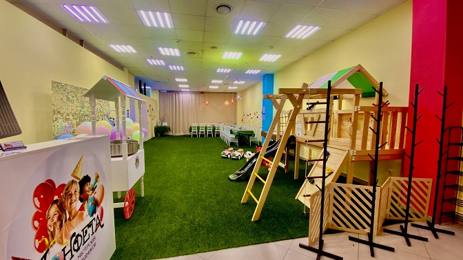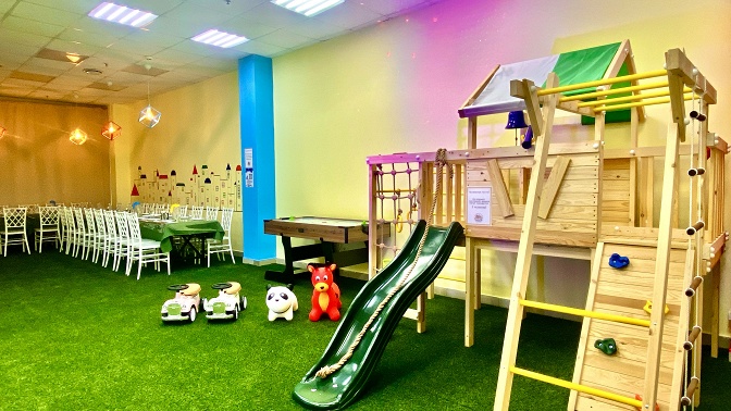 — игровая зона (домик, горка, аэрохоккей, талакары);