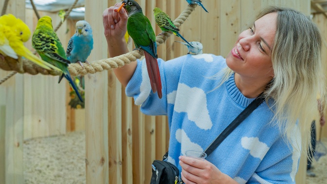 Посещение пространства с ручными попугаями в будние дни и утро пятницы (до 17:00):
