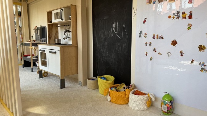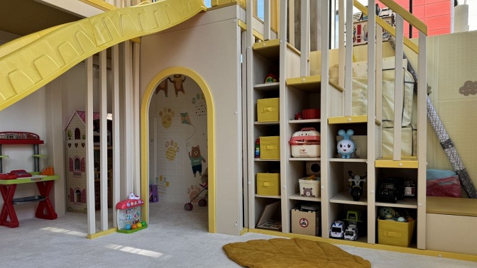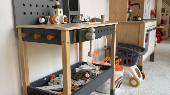 — яркие и разнообразные игрушки (автотреки, кухня, супермаркет, мастерская, кукольный дом, развивающие игрушки, конструкторы);