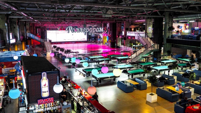 Например, можно будет поиграть в боулинг, дартс, настольный теннис, бильярд, аэрохоккей, посетить автодром и роллердром. А еще есть киберзона, компьютерный клуб, VR-зона и различные симуляторы. Тут будет интересно как взрослым, так и детям. Еще на территории работают уютные кафе — после насыщенного активного отдыха можно будет перекусить.