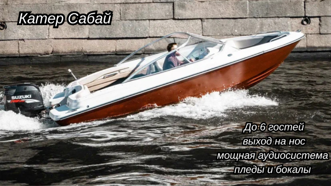 — Скидка 50% на прогулку на катере «Сабай» с капитаном для компании до 6 гостей (1 час) (6000 руб. вместо 12 000 руб.)