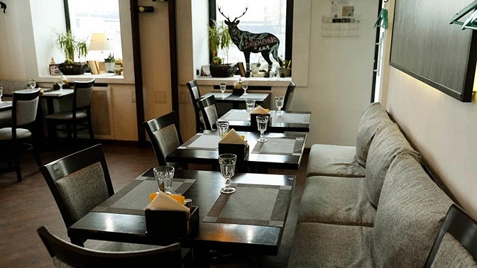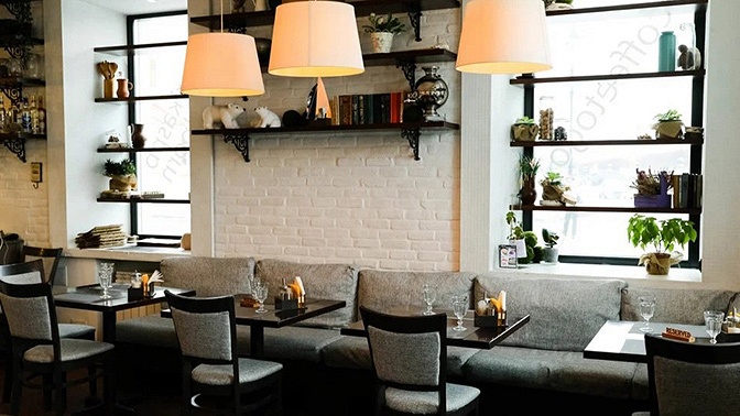 - Вас ждет зал с интересным интерьером и декором, который передает характер заведения и его атмосферу. В этой комфортной обстановке легко настроиться на спокойный отдых и на время забыть обо всех проблемах. Здесь вы сможете обсудить дела с коллегами, пообщаться с друзьями, провести время с семьей или устроить романтическое свидание. Вежливый персонал, быстрое обслуживание, большой выбор блюд и напитков — вы отлично проведете время.
