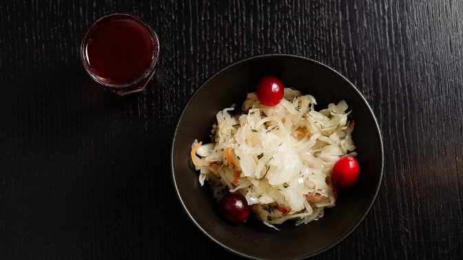 — домашние вареники с шампиньонами и квашеной капустой (160 гр.);