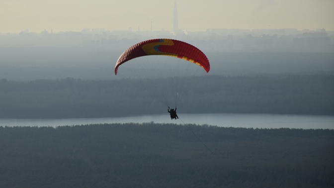 Самостоятельный взлет параплана с равнины невозможен. В небо вас поднимет специальный механизм — гидравлическая активная лебедка. После того, как вы наденете и застегнете подвесную систему, к вам подцепят тонкий, но чрезвычайно прочный трос, за который вас вместе с парапланом потянут над полем. Вот здесь потребуется немного пробежать по земле, пока поток воздуха не подхватит вверх. Когда параплан достигнет высоты 300–500 м, инструктор отцепит буксировочный трос, и вы будете парить над землей, получая удовольствие от свободного полета.