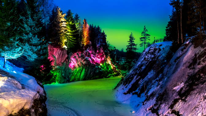 Купон действует на билет для одного на однодневный тур в Карелию с посещением водопадов и горного парка «Рускеала».
