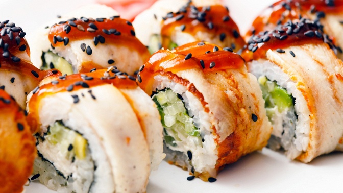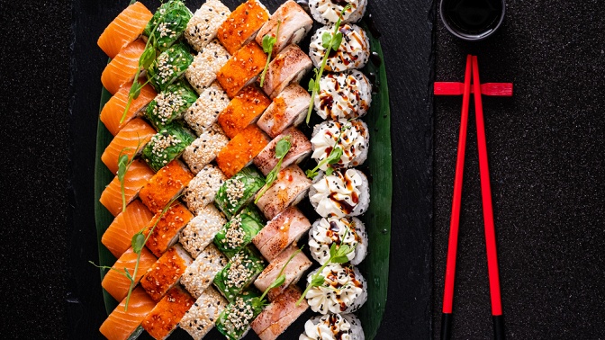 - Суши и роллы — это блюда японской кухни, которые традиционно готовятся из ароматного японского риса и свежей рыбы, однако туда добавляют и другие компоненты на усмотрение шефа. Для роллов чаще используют сушеные морские водоросли — нори, а также кладут внутрь всевозможные виды морепродуктов, курицу, мясо, икру, овощи, сливочный сыр, кунжут и другие продукты. В этом многообразии для каждого найдется подходящий вариант!