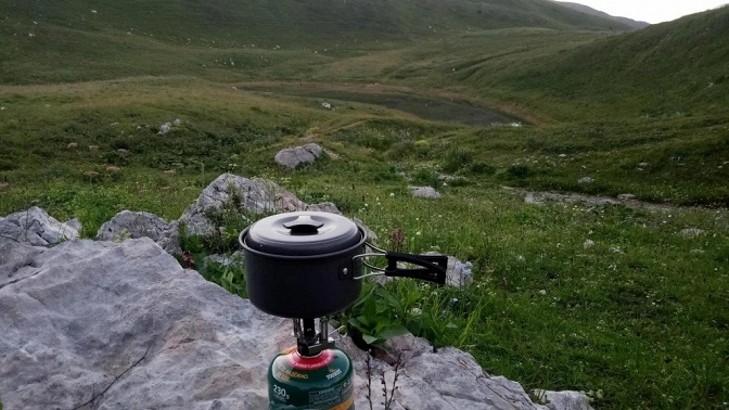 — 17:00 — приют Фишт, установка лагеря, готовка ужина;
