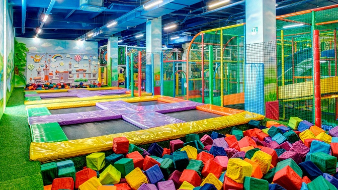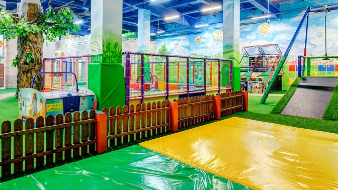 Маленьким любителям экстрима придется по вкусу игрушечная паутина, тарзанка, прыжки с высоты на пневматическую подушку и аттракцион «Сумасшедшие горки». Мальчики и девочки, предпочитающие развлечения другого формата, могут поиграть в настольный хоккей, поплавать в сухом бассейне, попрыгать в поролоновой яме или пострелять из воздушных пулеметов и пушек.