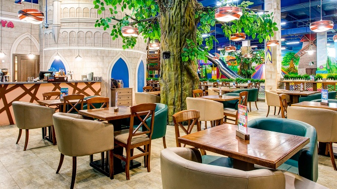 Семейный парк активного отдыха располагает рестораном, в котором подают качественную и здоровую еду. Меню включает пищу для взрослых, блюда домашней кухни и отдельные угощения для детей с красивой и необычной сервировкой. На территории игрового центра возможно проведение ярких и зажигательных детских праздников: дня рождения, утренника, выпускного. Для таких мероприятий в заведении предусмотрены специальные помещения, оформленные в стиле известного детского мультфильма.