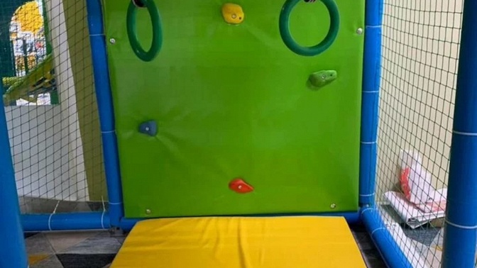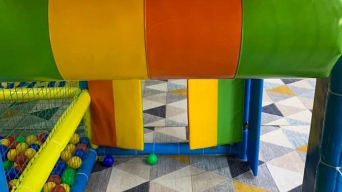 — игровая зона с двухуровневым лабиринтом, горкой, батутом, скалодромом и огромным количеством игрушек;