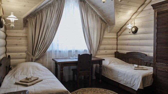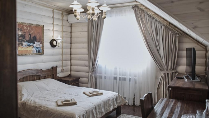 Вас ждет дружелюбная атмосфера, высокий уровень обслуживания, развитая инфраструктура. Гостиница находится недалеко от известного горнолыжного комплекса «Пужалова гора». Интерьер выдержан в традициях русской деревенской избы. Стены из массивных бревен и мебель из натурального дерева делают номера очень тихими и уютными.