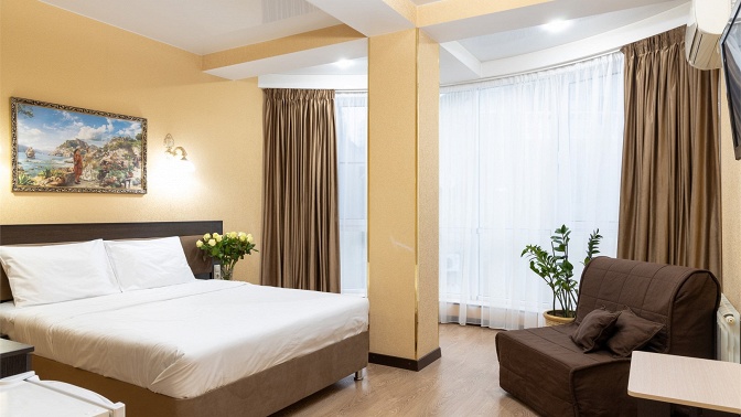 - Golden House — уютный гостевой дом, расположенный в самом сердце Сочи, в непосредственной близости от городского пляжа. Здесь 21 номер, каждый из которых оформлен в элегантном стиле и оснащен современной техникой.