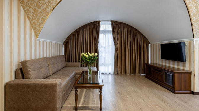 — Скидка 30% на проживание в номере категории люкс для троих в течение 3 дней/2 ночей в периоды с 01.02.2026 по 06.02.2026 и с 16.02.2026 по 28.02.2026 (7700 руб. вместо 11 000 руб.)