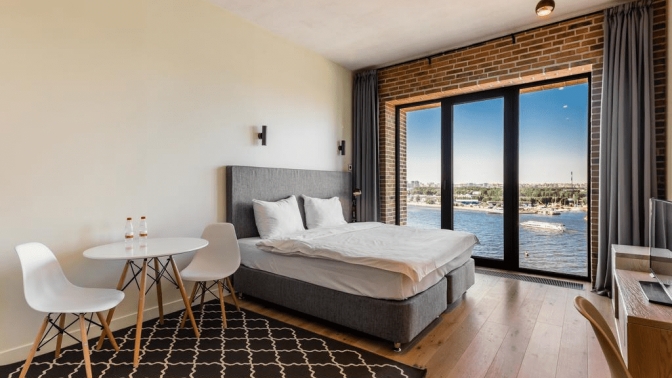 Проживание в апартаментах «Студия с панорамным видом на закат и реку Неву» для двоих без завтраков в будние дни (вс-пт) в период с 04.05.2025 по 31.05.2025: