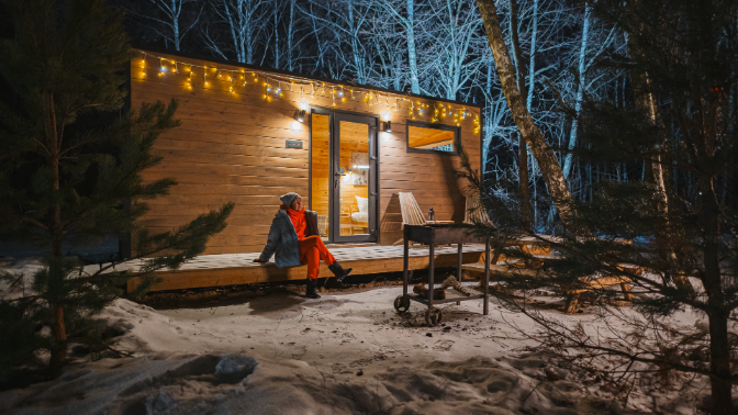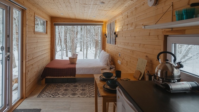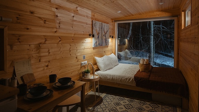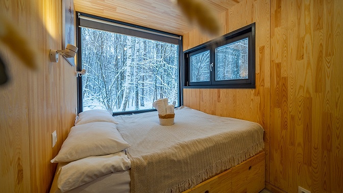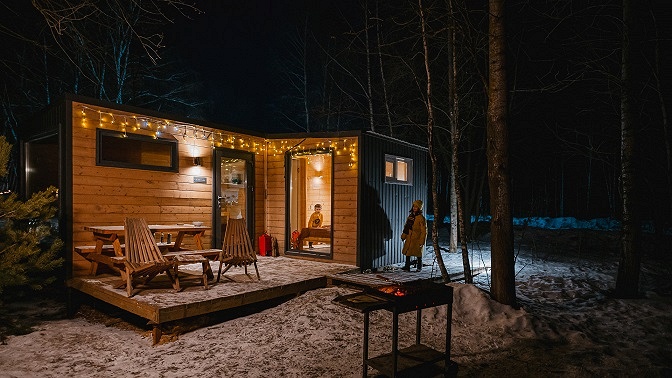 В уютных скандинавских домиках вы расслабитесь и отдохнете от городской суеты. В каждом домике есть двуспальная кровать, мини-кухня, оборудованная плитой и холодильником, а также ванная комната и санузел. Рядом предусмотрена зона для барбекю. На территории комплекса работает Wi-Fi.