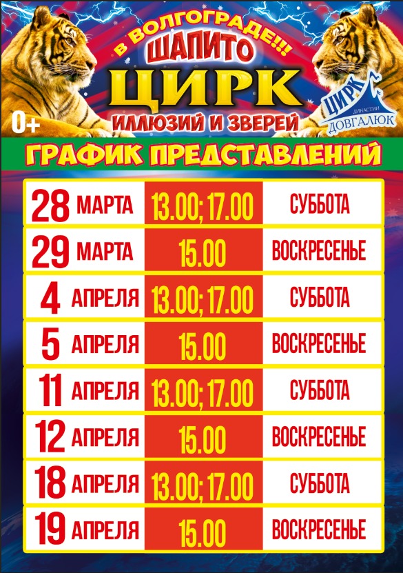 — расписание представлений может быть изменено (подробности необходимо уточнять по телефону +7 (8442) 50-20-21 или в кассе цирка с 11:00 до 20:00 ежедневно);