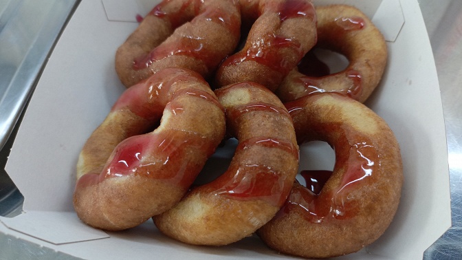 — Скидка 50% на набор из 4 пончиков с топингом на выбор (соленая карамель, малина или клубника) (20 руб. + доплата 75 руб. вместо 150 руб.)