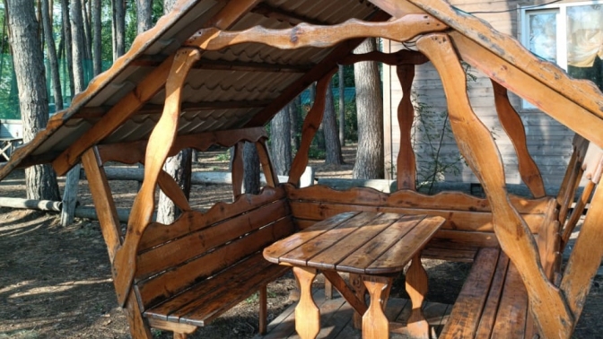 — беседки рассчитаны на 8, 13 или 18 человек (оборудованы столом, стульями, мангалом, умывальником-рукомойником, светильником, туалет находится на территории);