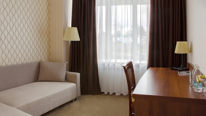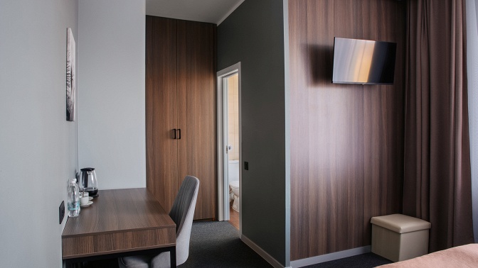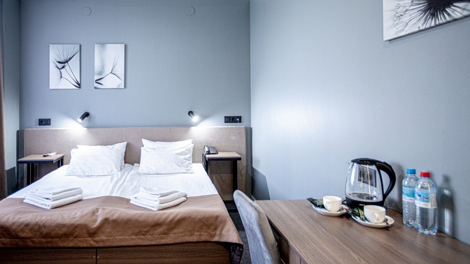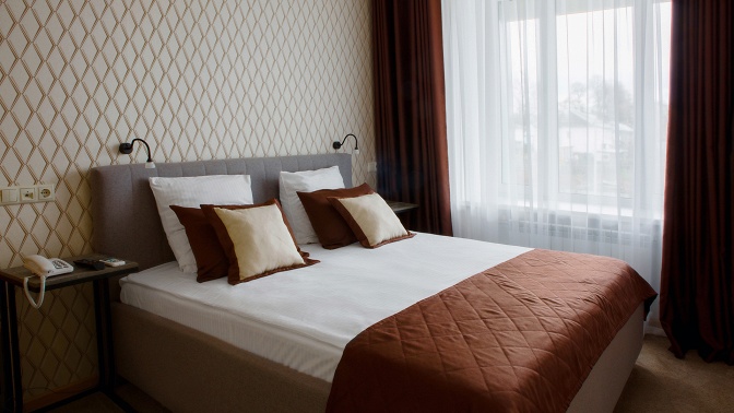 Все гостевые номера оформлены в едином стиле, оснащены кроватями, шкафами для хранения вещей, прикроватными тумбами, телевизорами с подключением кабельных телеканалов, телефонами, доступом к Wi-Fi, электронными замками, сейфами, собственными душевыми комнатами с фенами, туалетно-косметическими принадлежностями. - https://parrus-hotel.ru/